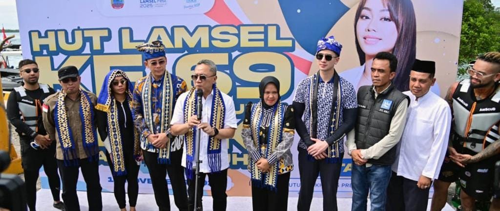 Ampunnews Bakauheni – Aksi jetski lintas Selat Sunda dari Merak menuju Bakauheni yang dipimpin Utusan Khusus Presiden (UKP) Bidang Pariwisata sekaligus Ketua TP PKK Lampung Selatan, Zita Anjani, resmi membuka Lamsel Fest 2025, rangkaian peringatan HUT ke-69 Lampung Selatan, Jumat pagi. Jumat (14/11/2025).